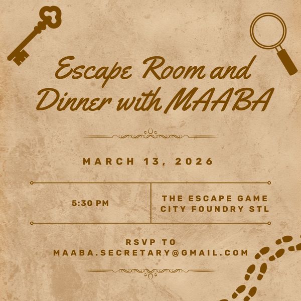 Test your puzzle acumen! Join your fellow MAABA members for some escape room fun followed by a group dinner on Friday, March 13th at 5:30 pm.